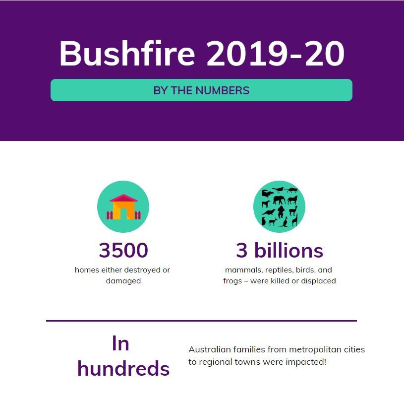 Bushfire and the approaching summer are something we need to prepare for! I agree that we have lost enough due to Covid-19. However, a simple google search for damages and losses in the last summer raised all the alarms for me this weekend. Below is a crude view of the data which triggered me to venture into some readings and activities to help prevent extreme wildfires.